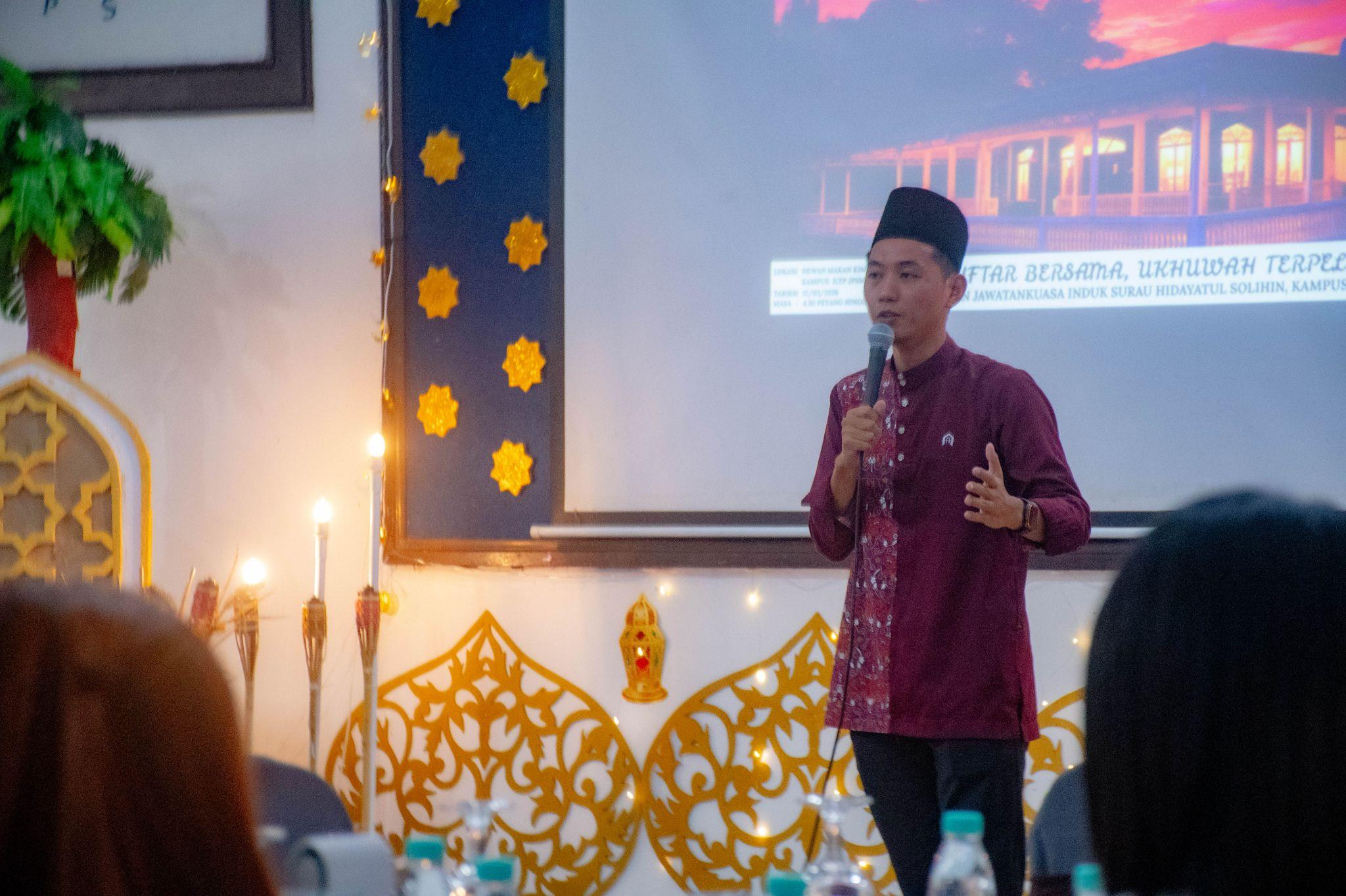 Turut hadir ialah YBrs. Tuan Muhammad Ikhwan bin Ghulam Jelani, Timbalan Pengarah JPSM, serta YBhg. Puan Kamsiah binti Ibrahim, Pengarah JPSM. Semoga majlis ini menjadi wadah memperkukuh silaturahim serta menyemarakkan semangat Ramadan dalam kalangan warga ILTP, JPSM.