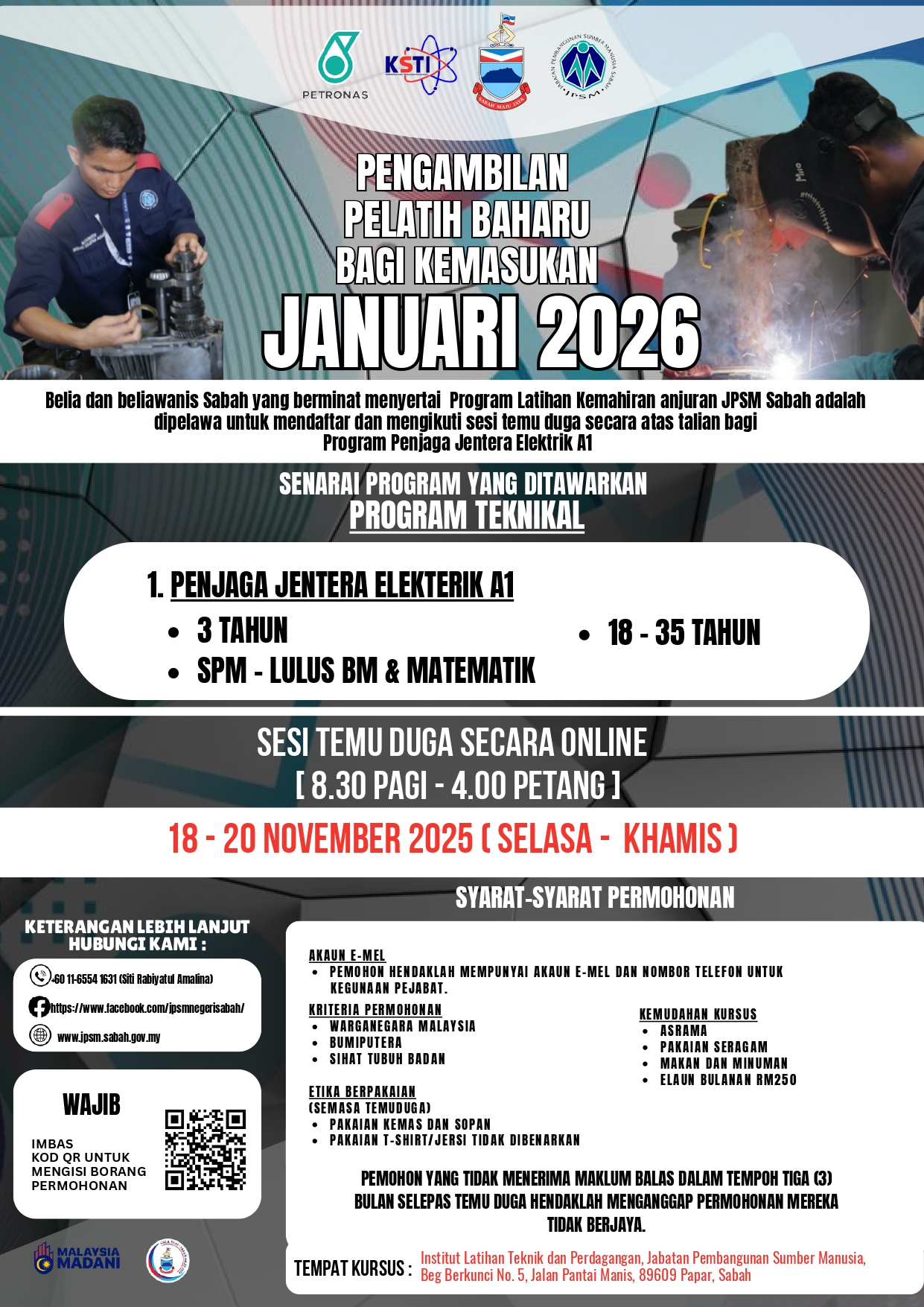 Pengambilan Pelatih Baharu Sesi Januari 2026 - Penjaga Jentera Elektrik A1